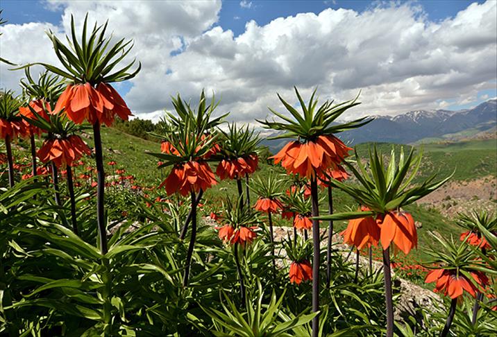 Tunceli'de zorlu geçen kış mevsiminin ardından gelen baharla dağların zirvelerindeki kayalıkların arasında yüzünü göstermeye başlayan ters laleler, tabloları aratmayan görüntüsüyle görenleri adeta büyülüyor.
