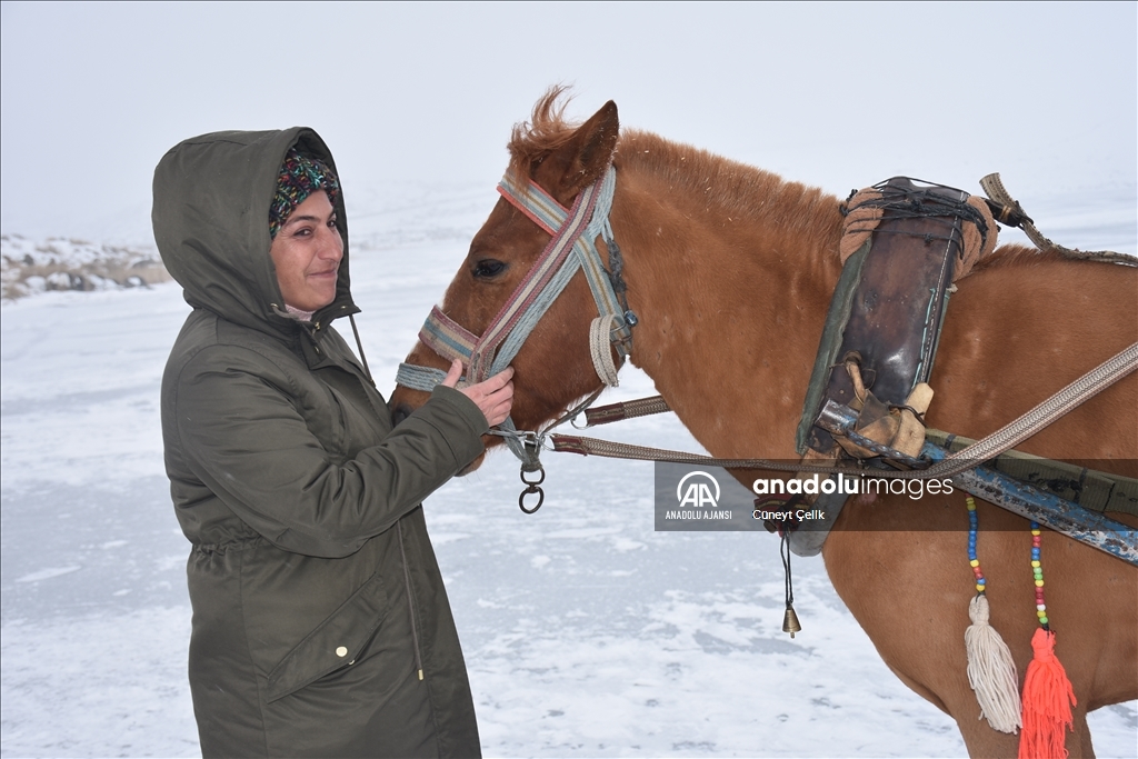 Çıldır Gölü'nde atlı kızağa binen Meral Bakır da Kars'ı çok beğendiklerini anlatarak, "Trenle geldik ve gezilecek yerleri gezmeye başladık, hava soğuk ama eğlenceli oldu Çıldır Gölü çok güzel." dedi.