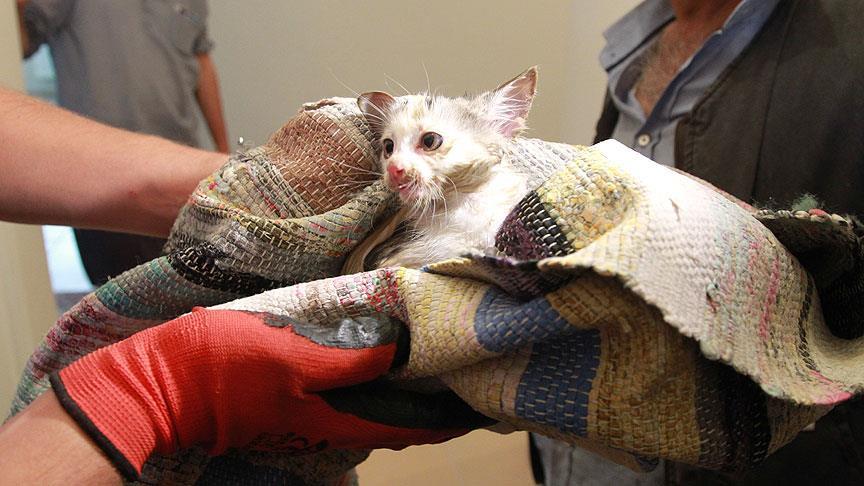 Haber verilmesi üzerine olay yerine gelen AFAD ekipleri, yavru kediyi sıkıştığı yerden çıkardı.