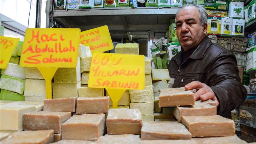 Malatya'da kimyasal madde içermeyen doğal sabun satan 56 yaşındaki Ramazan Yıldırım, dedesinden kalan 80 yıllık dükkanda üç kuşaktır işini devam ettiriyor.