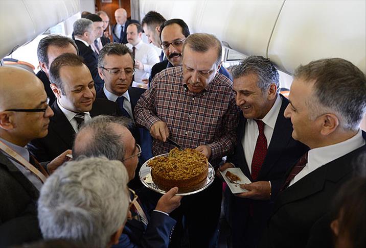 Başbakan Erdoğan, Çek Cumhuriyeti'ne giderken 'ANA' uçağında Türkiye Gazetesi Köşe Yazarı Nuri Elibol'un doğum gününü kutladı.