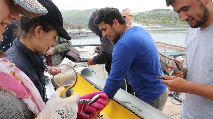 Ataduzduyyev, iki yıl önce İzmir'de balıklara aşı yapmayı öğrendiklerini ifade ederek, "20-25 gram alabalık yavrularına aşı yapmaktayız. Aşı, balıkları 8 ay boyunca hastalıktan koruyor. Günde 45-50 bin balığa aşı yapıyoruz. Balıklar fenoksi ile bayıltıldığı için aşı yapmak zor olmuyor. Burada bir milyon civarında balığı 20 günde aşılayıp bitireceğiz." dedi.