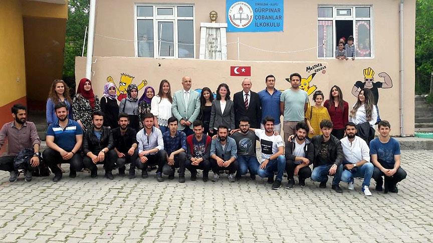 Bülent Ecevit Üniversitesi Alaplı Meslek Yüksek Okulu'nda (MYO) eğitim gören 40 öğrenci, "sosyal sorumluluk projesi" kapsamında Gürpınar köyü Çobanlar İlköğretim Okulunu yeniledi.