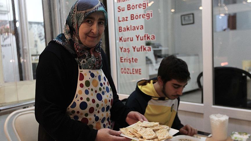 Mahallesindeki bir iş yerini kiralayarak 4 yıldan bu yana mantı, gözleme, börek ve bazı ev yemeği çeşitlerini yapmaya başlayan Atmaca, bir süre sonra işe aldığı 3 kadınla nöbetleşe öğrencilere ev yemekleri sunmaya başladı.