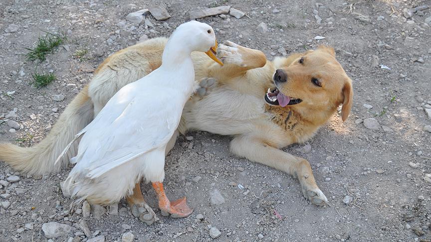 Ali Aktaş, köpek ve ördeğin dostluğunun köylüler tarafından da ilgiyle karşılandığını sözlerine ekledi.