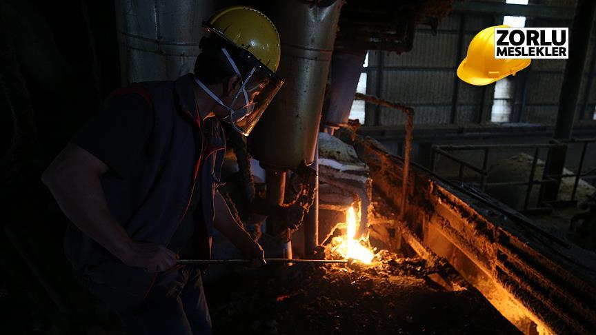 "Bazalt taşı, kömür, dolamit karıştırılarak eritilir. Bazal taşından çıkan lav, atomotize şekilde dağıtılır ve elyaf haline getirilir. Benim vazifem elyafın aşağı kadar gitmesi. Bin 600-bin 650 derecede çalışıyoruz. Zor ama güzel meslek. Ülkemizde nadir bir meslek, az yapılan bir meslek, o yönden de güzel bir şey. Sıcaklığı zor. Yaz dönemi çok çok daha zor ama yapacak bir şey yok. İşimizi seviyoruz. Koruyucularımız var, onlar olmadan çalışamıyoruz."