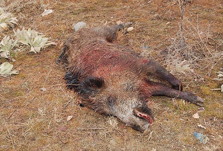 Vatandaşların sopa ve taşlarla müdahale ettiği yaralı yaban domuzu, bir süre koştuktan sonra öldü.