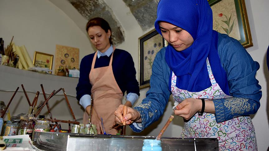 Yabancı öğrenciler 'ebru' öğreniyor