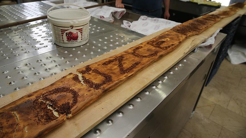 Düzce'de bir fırıncının, 6 metrelik fırında 5 metre 77 santimetre uzunluğunda yaptığı ramazan pidesi, vatandaşların ilgisini çekti.