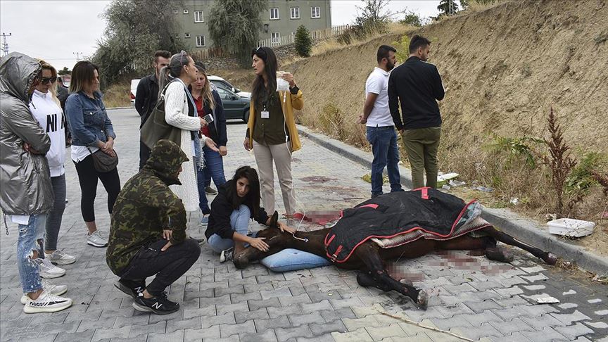 Bu sırada yaralı atı fark ettikleri andan itibaren yalnız bırakmayan hayvanseverler gözyaşlarını tutamadı.