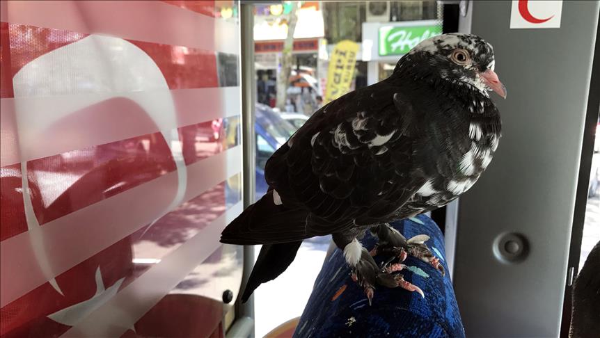 Güvercine "Zeytin" adını verdiğini dile getiren Yılmaz, yolcuların çocuklarının da genellikle güvercini sevdiğini kaydetti.