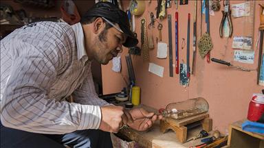 Aksaray'da, yürüme engelli 70 yaşındaki Ahmet Kaş, ilerleyen yaşına rağmen 3 metrelik atölyesinde ayakkabı tamiri yaparak mesleğini ilk günkü heyecanla devam ettiriyor.