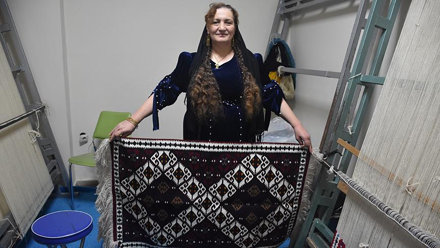Merkezde, 20 öğrenciye kilim dokuma dersi verdiğini, el emeği göz nuruyla kilim de dokuduğunu dile getiren Tokgözoğlu, "Kilim dokumak benim hayatımın bir parçası, bu tezgahlarda büyüdüm. Kilim dokuyarak 2 çocuk büyüttüm." dedi.