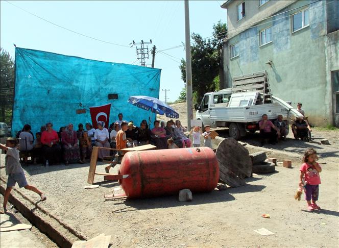 Ayiçi Mahallesi Küme Evleri Sokak'ta oturan bir grup mahalleli kadın, evlerinin önünden geçen özel kömür ocaklarına ait kömür kamyonları ile araçların toz kaldırmasından şikayet ederek mahalle yoluna barikat kurdu. Kadınlar daha sonra barikatın arkasına geçerek sandalyelerde oturdular.