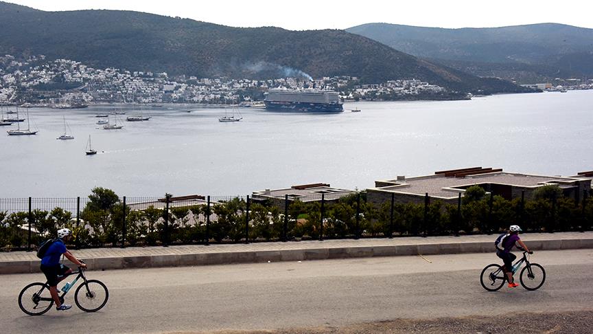 Bazı turistler de gemiden edindikleri bisikletlerle, Bodrum'un kent merkezi ve tarihi alanlarını gezip, turlarına farklı bir heyecan katıyor.