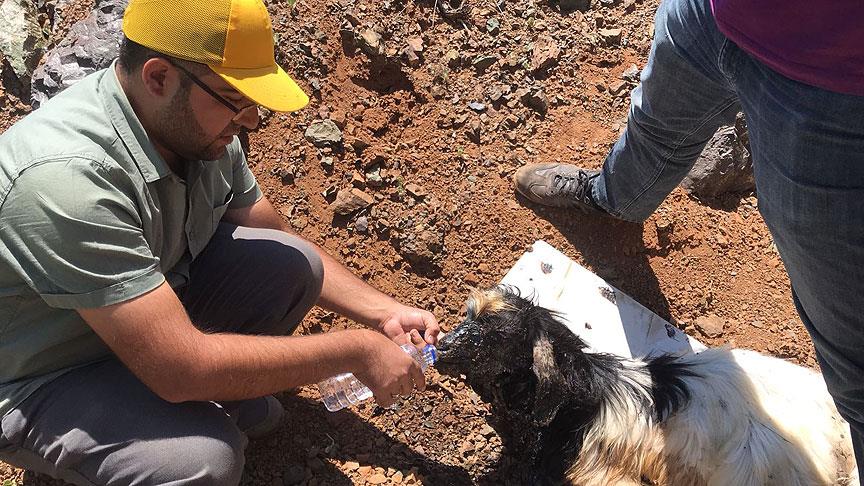 Zifte yapışan keçi belediye ekiplerince kurtarıldı