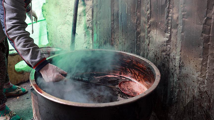 Zor ve zahmetli bir çalışmayla hazırlanan nar ekşisi, bakır kazanlarda yaklaşık 5 saat kaynatılarak kıvam alıyor.