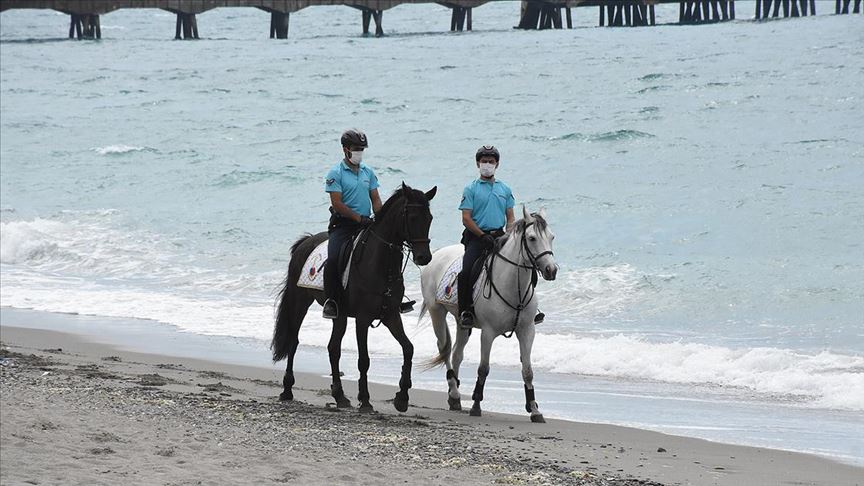 Jandarma astsubaylar, Nevşehir'deki Jandarma At ve Köpek Eğitim Merkezi Komutanlığından (JAKEM) getirilen "Efsane" ve "Ece" isimli atlarla ilçeye bağlı Filyos beldesindeki sahilde devriye gezdi.